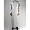 Crafted by hand in Muscat, this dust grey Omani thobe is a versatile addition to any boy's traditional attire. Made from a crisp, high-grade fabric, it features water-resistant technology that helps the thobe stay dry and clean, no matter the occasion.